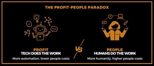 Secondly, profit-motivated and/or financially constrained organizations will need to confront the paradox that stems from their ability to use their digitally transformed enterprises to do more with less, particularly being able to generate greater profit or output with fewer people.